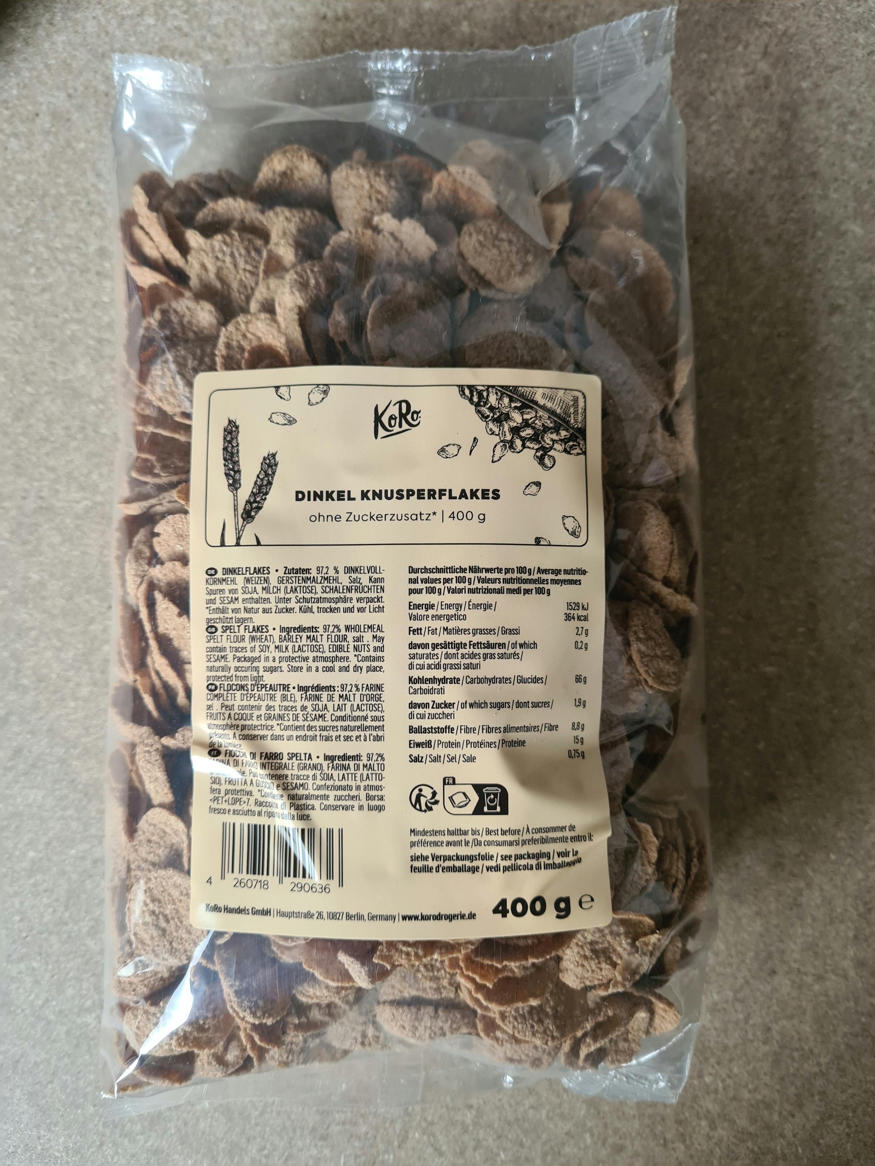 Pro 100 g haben die Knusperflakes aus Dinkel 364 kcal.