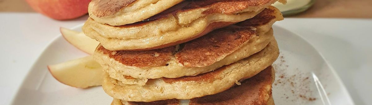 Etwas Öl in einer Pfanne erhitzen und je Pancake 2 EL Teig in die Pfanne geben. Jeweils 2 Apfelscheiben auf jeden Pancake legen und nach etwa 2–3 Minuten wenden.