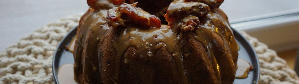 Die Soße ein wenig abkühlen lassen und über den Kuchen geben. Du kannst den Kuchen mit einer Handvoll gehackter Datteln und grobem Meersalz garnieren.