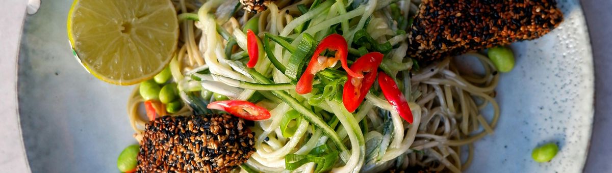 Sobanudelsalat mit Sesamtofu