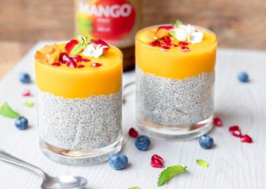 Nicht umsonst trägt die Mango in Indien den Titel “Götterspeise”. Die tropische Frucht besticht mit ihrem süß-säuerlichen Aroma. Ob Frühstück, Mittagessen, Dinner oder Cocktailparty – unser fruchtiges Mango-Püree ist vielseitig. Feine Klassiker wie Mango-Chutney zu gebratenem Fisch oder Mango-Lassi zum scharfen Curry gehen immer. Aber wie wär’s mal mit einer Kokos-Panna Cotta mit Mango-Püree? Oder mit einem No Bake-Mango Kuchen? Unser Rezept für die Mango-Smoothie-Bowl solltest Du Dir ebenfalls nicht entgehen lassen. Oder Du machst damit einen Dip zu Gemüse. Falls Dir das zu lange dauert, ist unser beliebter Mango-Curry-Aufstrich vielleicht etwas für Dich. Übrigens: Auch beim aktuellen Trendgetränk ist unser Püree ganz vorne mit dabei – Mango Matcha Latte! Fruchtig, cremig, leicht herb und optisch ein echter Hingucker – mix Dir den Sommer ins Glas! Du liebst den Mangogeschmack? Dann probiere auch unsere getrockneten Mangoscheiben.
