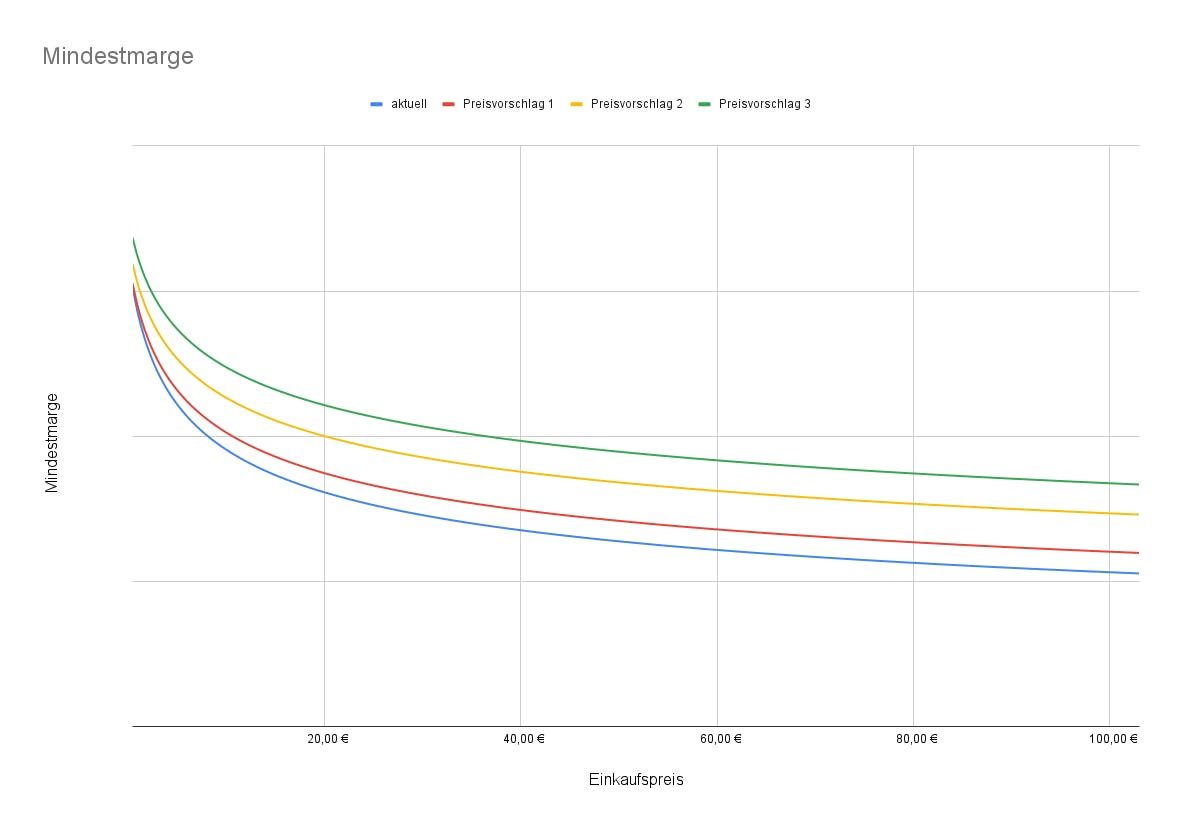 Wir mussten in Folge der Inflation unsere ursprüngliche Berechnung der Mindestmarge anpassen, denn bei der Menge an verschiedenen Produkten im Shop haben sich zwei Probleme herausgestellt: