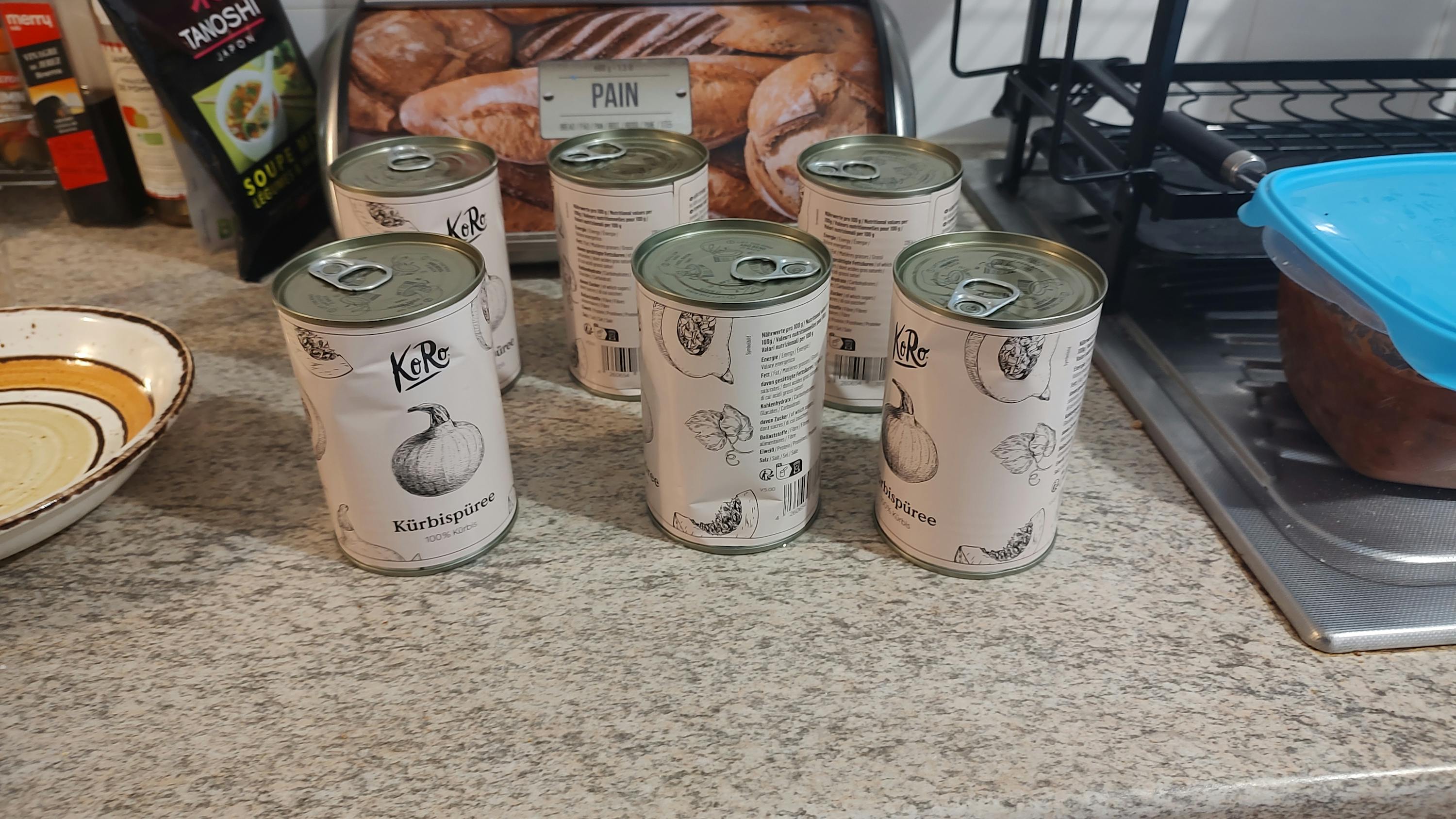 Ich war sehr interessiert, als ich die Kürbiskonserven sah, da sie in Frankreich nicht leicht zu finden sind. Die Lieferung der Kürbisdosen kam schnell, früher als erwartet, was sehr schön war.