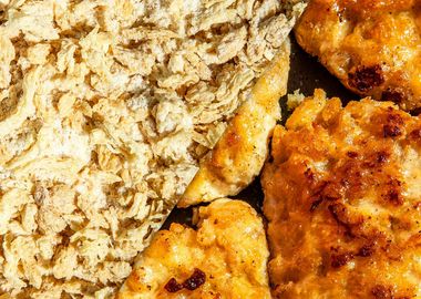 Zubereitung: 175 ml kaltes Wasser, 2 EL Rapsöl und 75 g Beutelinhalt gründlich verrühren. Für mindestens 30 Minuten im Kühlschrank quellen lassen. Filet nach Belieben ausformen und mit 2-3 EL Rapsöl 5-6 Minuten bei mittlerer Hitze anbraten