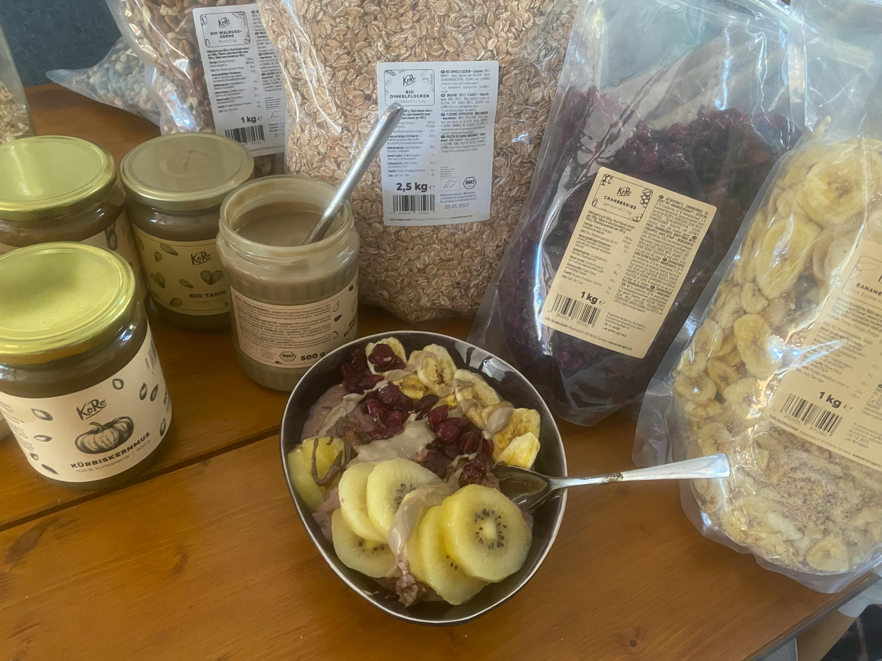 Wir bei KoRo analysieren die Treibhausgasemissionen, die bei der Herstellung unserer Leckereien entstehen. Dazu gehören unter anderem CO₂, Methan und Lachgas. Unsere fleißigen Sustainability-Kolleg:innen sammeln alle Infos und berechnen einen Wert: die sogenannten CO₂-Äquivalente. Diese Informationen geben wir jetzt an Dich weiter, damit Du fundierte Kaufentscheidungen treffen und Deinen ganz persönlichen CO₂-Fußabdruck im Blick behalten kannst. Aber auch wir nutzen diese wertvollen Erkenntnisse: So können wir unsere Lieferketten in Zukunft noch smarter gestalten und auch unseren CO₂-Fußabdruck im Blick behalten.
